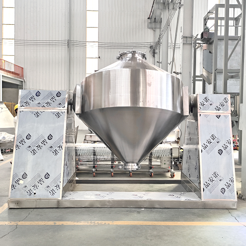 El mezclador de doble cono es un equipo eficiente de mezcla de polvo. Su cuerpo principal está compuesto por dos cilindros cónicos conectados entre sí y es accionado por un motor para girar alrededor de un eje horizontal.Su diseño de sellado reduce eficazmente la fuga de polvo y se utiliza ampliamente para mezclar polvo y materiales granulares en industrias como la medicinaLa selección de la capacidad del equipo es flexible, la operación es simple, la uniformidad de mezcla es alta, la cantidad de material residual es baja,y el diseño estructural es conveniente para la limpieza y el mantenimiento, satisfaciendo los dos requisitos de alta eficiencia de mezcla y alta limpieza en la producción por lotes.