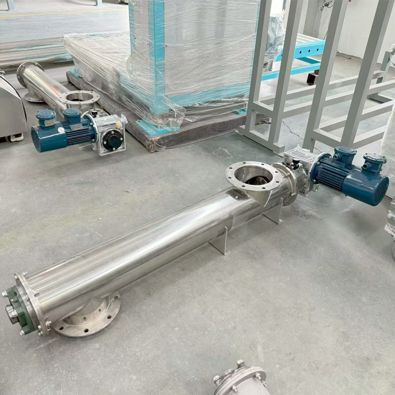 1. El transportador de tornillo transporta el material mezclado desde la mezcladora de cinta a un transportador de tornillo horizontal