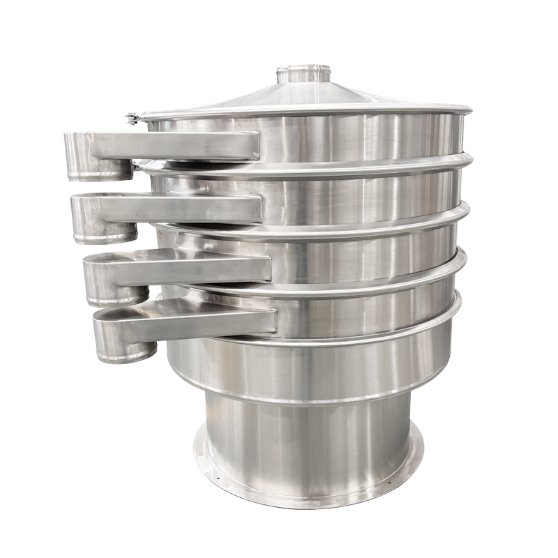 Esta fuerza de vibración actúa sobre el cuerpo del tamiz, haciendo que los materiales en la pantalla del tamiz realicen un movimiento de salto en espiral.los materiales con diámetros consistentes con la abertura de la pantalla de tamiz pasarán a través del tamiz y caerán a la capa inferior, mientras que los materiales que no cumplan con los requisitos seguirán moviéndose a lo largo de la superficie del tamiz y finalmente se descargarán a través del puerto de descarga, logrando así la separación,eliminación de impurezas o filtración de los materiales.