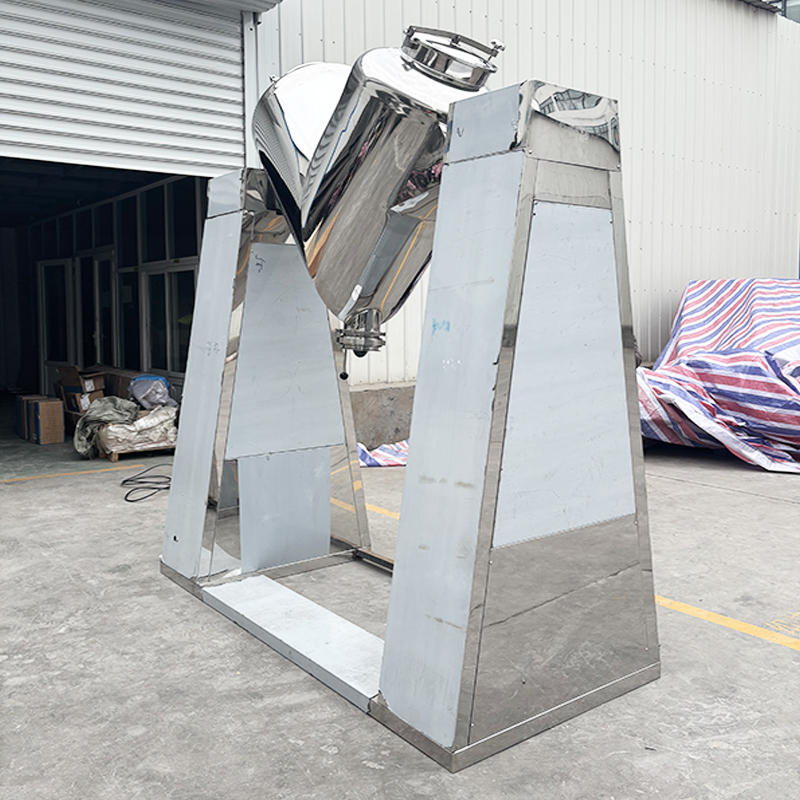 La mezcladora de tipo V es un equipo de mezcla de polvo de alta eficiencia y de uso común. Su estructura principal consiste en dos cilindros asimétricos conectados en un ángulo en forma de V. Durante el funcionamiento, la mezcladora de polvo de tipo V se utiliza para mezclar el polvo de polvo en forma de V. La mezcladora de tipo V es un equipo de mezcla de polvo de alta eficiencia y de uso común.el cilindro en forma de V gira alrededor del eje central, lo que hace que los materiales en el interior se separan, se difundan y fluyan constantemente, logrando así una mezcla rápida y uniforme.Este equipo es adecuado para mezclar suavemente materiales secos como polvo y gránulos. Se caracteriza por un corto tiempo de mezcla, una alta uniformidad de mezcla, una limpieza fácil y una descarga exhaustiva. Se utiliza ampliamente en industrias como la alimentaria y química.