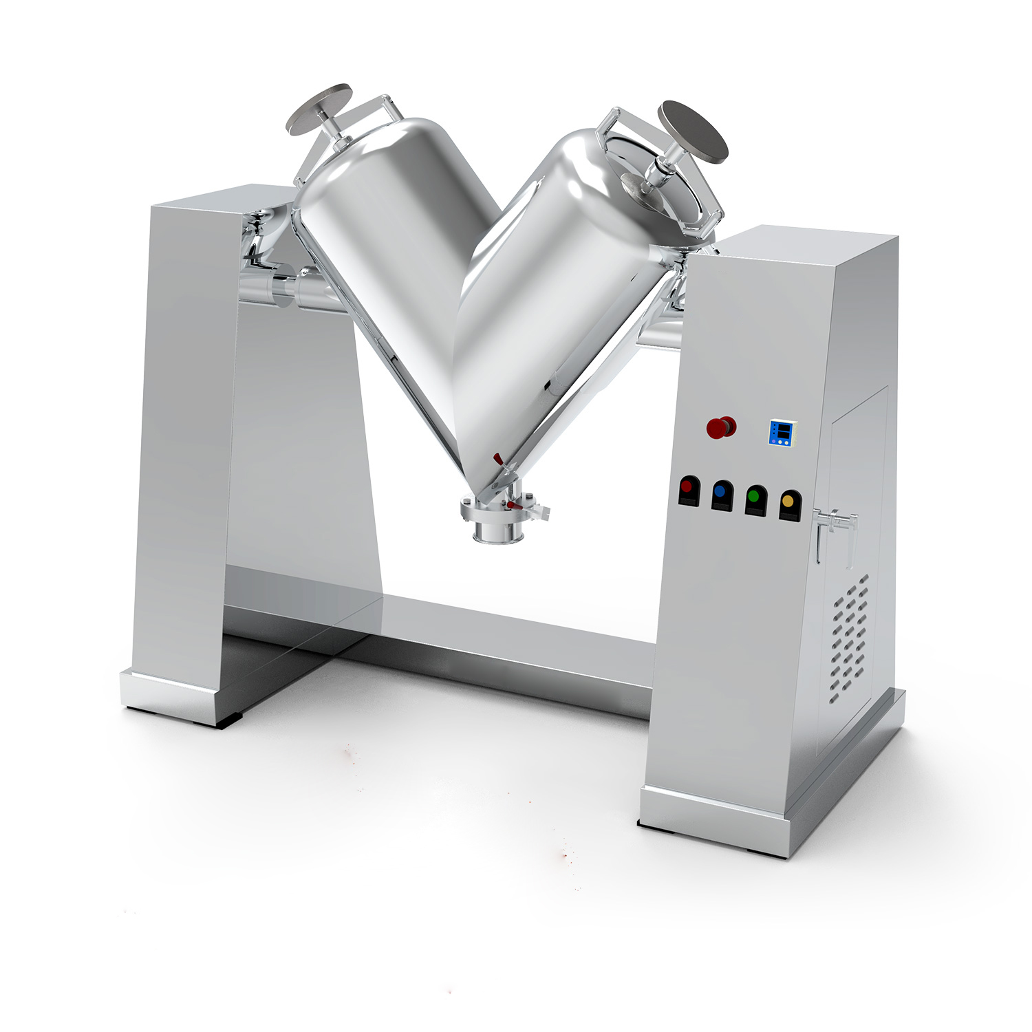 La mezcladora en forma de V es un equipo de mezcla de polvo eficiente y versátil. Su cuerpo principal está compuesto por dos secciones cilíndricas asimétricas conectadas en forma de V. Durante la operación, los cilindros giran alrededor de sus ejes, lo que hace que los materiales internos se sometan repetidamente a agregación y separación, logrando así una mezcla rápida y uniforme. Este equipo tiene una estructura simple, es fácil de operar y tiene una pared interna lisa sin residuos, lo que facilita la limpieza y el mantenimiento. Es particularmente adecuado para industrias con requisitos de higiene durante el proceso de mezcla. Se utiliza ampliamente en las industrias farmacéutica, alimentaria y química, y es adecuado para la mezcla suave y eficiente de varios polvos secos y materiales granulares.