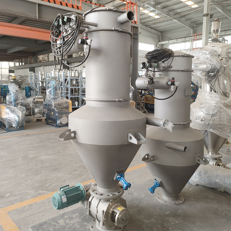 El principio de funcionamiento de la máquina de alimentación de vacío continuo es utilizar la bomba de vacío para generar presión negativa en el separador sellado,absorbiendo así la mezcla de material y aire y logrando la separación gas-sólido a través del sistema de filtraciónCuando se cumplen las condiciones preestablecidas, el sistema corta automáticamente el vacío e introduce aire comprimido de soplado inverso para romper el vacío y limpiar el elemento del filtro.La válvula de descarga inferior se abre para permitir que el material se descargue bajo la fuerza de gravedad..