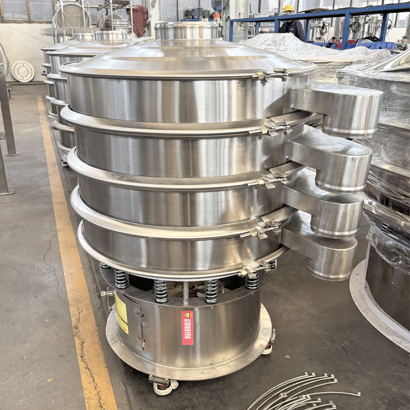 The rotary vibrating screen is a high-precision and high-efficiency fine powder screening machine, renowned for its low noise, fully enclosed structure and quick net change. It is suitable for screening, filtering and grading various forms of materials such as particles, powders and liquids. This equipment is small in size, light in weight, and easy to move. The outlet direction can be adjusted arbitrarily, and the parts in contact with the materials are usually made of stainless steel, meeting the hygiene standards of the food, chemical and other industries. It can be widely applied in the fields of chemical engineering, food, environmental protection, etc.